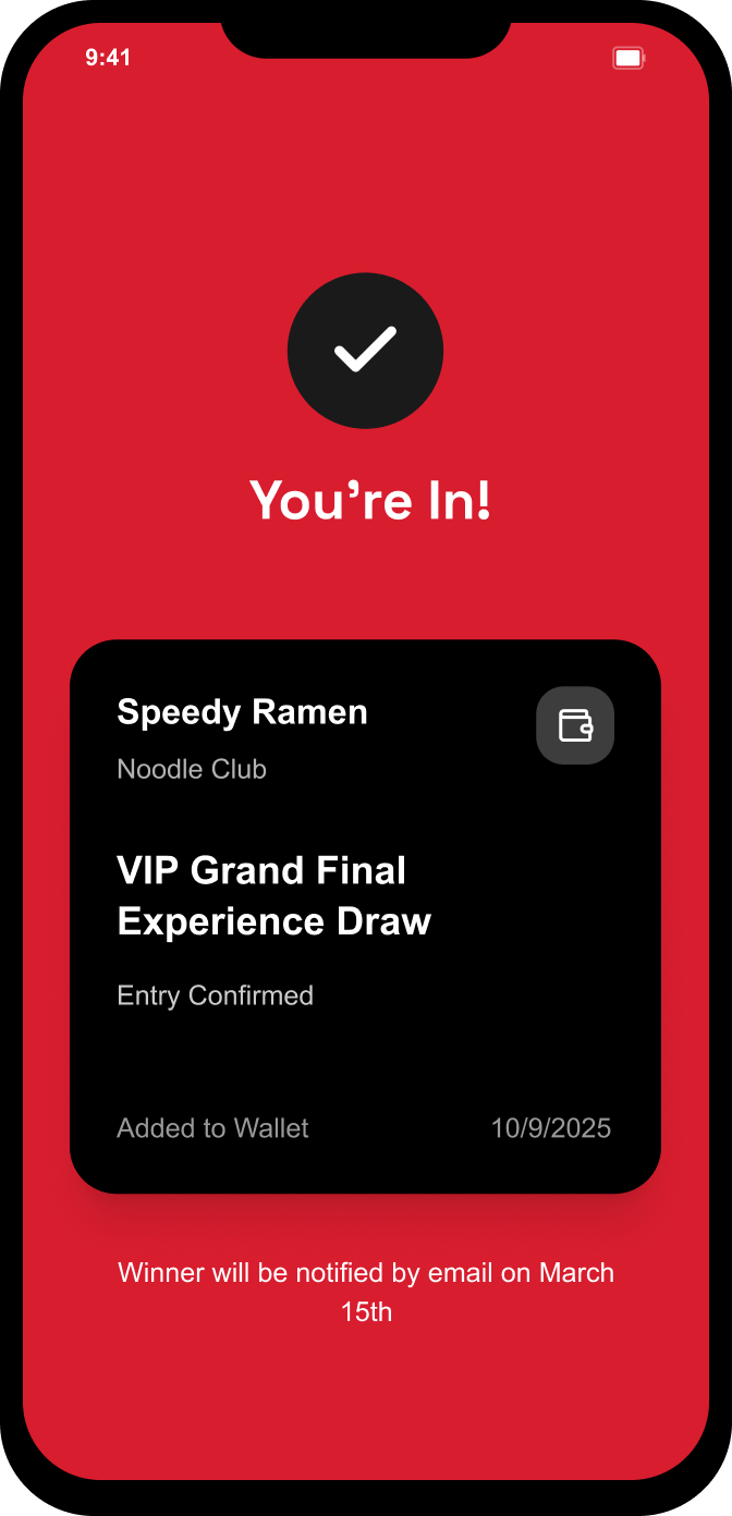 Once the entry is confirmed, the experience is saved directly to the user’s digital wallet.